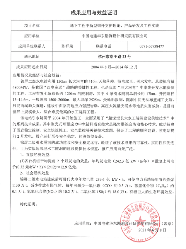 公司成立至今,已擁有自主專利40余項。企業(yè)榮獲國家、省級和專業(yè)學會等多項殊榮。先后主持、參與編寫7部標準國家及行業(yè)標準,更成為行業(yè)中首家擁有省級院士工作站的中國錨固事業(yè)的領頭羊企業(yè)。